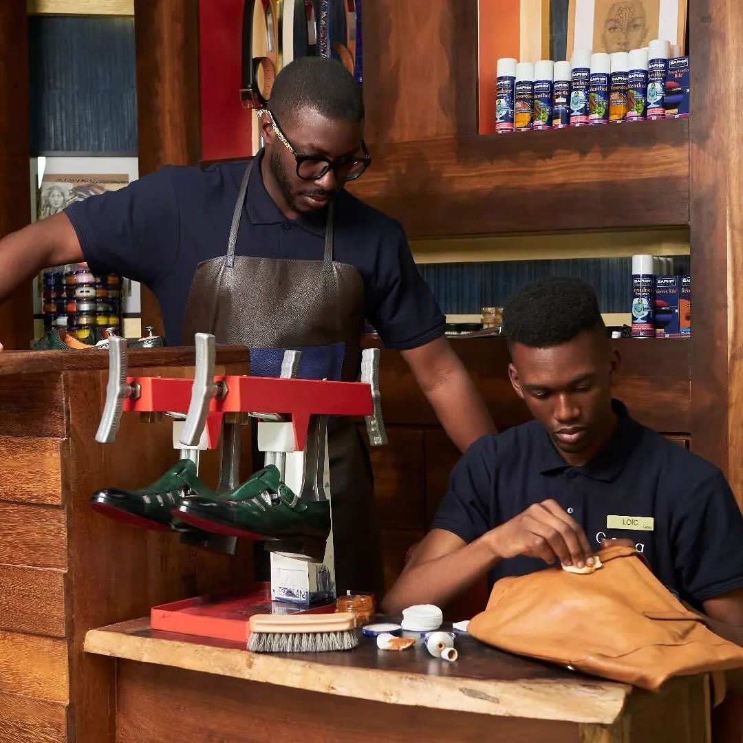 Chaque point est posé avec précision, selon des gestes transmis de génération en génération. Cette signature d’atelier confère à nos souliers une solidité incomparable et une finition d’exception.